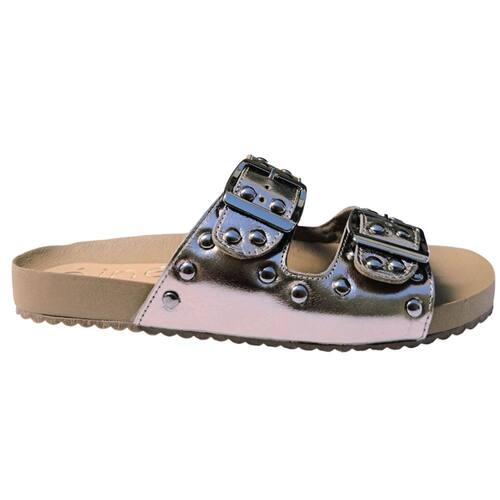 Sandália Rasteira Ibiza Detalhes Tachinhas Confort Flatform - 43 - Prata