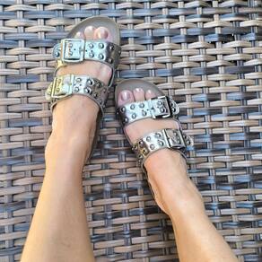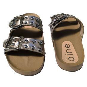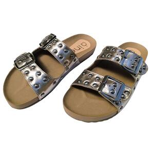 Sandália Rasteira Ibiza Detalhes Tachinhas Confort Flatform - 40 - Prata