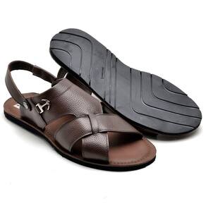 Sandália Rasteira Masculina Couro Tiras Casual Conforto - 41 - Marrom Chocolate