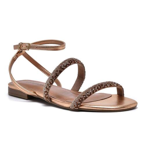 Sandália Rasteira Metalizado Via Marte 23-16605-01 Feminino - Bronze.