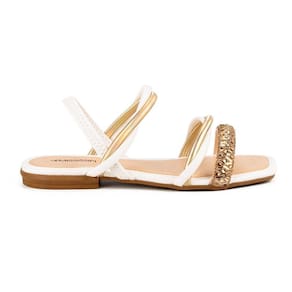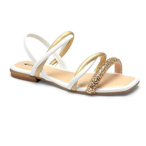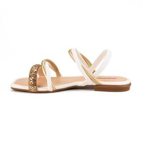 Sandália Rasteira Mississipi MI253 Feminina - Branca/Dourado.