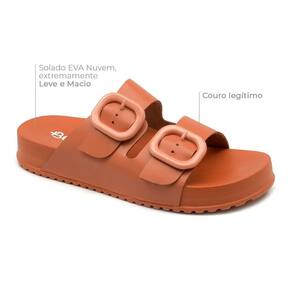 CARACTERÍSTICAS DO PRODUTO Material: Couro Fechamento: Fivela Com Regulagem Material Interno: Couro Palmilha: EVA Solado: EVA Nuvem, leve e macio