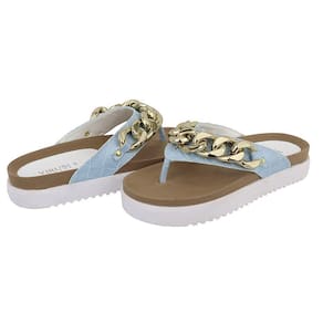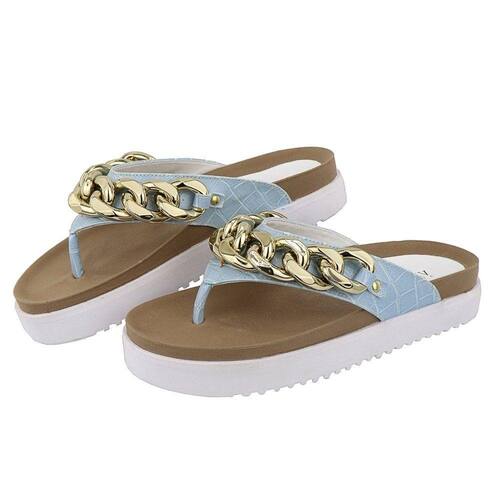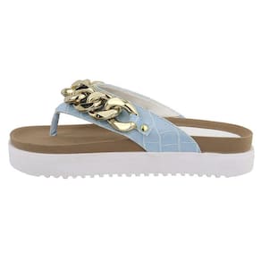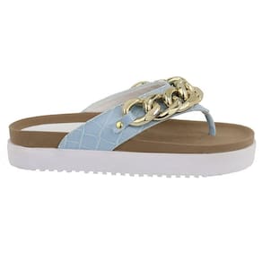 Sandalia Rasteira Papete Feminina Solado Tratorado Detalhe Corrente Elos Frontal Anatomica - 37 - Azul Petróleo