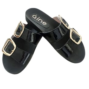 Sandália Rasteira Papete Fivela Ajustável Sem Salto Preta - Preto - 40