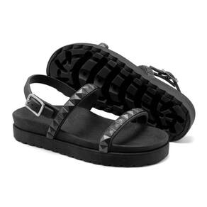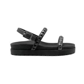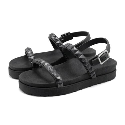 Sandalia Rasteira Papete Piramide Feminina Com Fivela Solado Microexpandido Confortavel Verao Macia - 37 - Preto