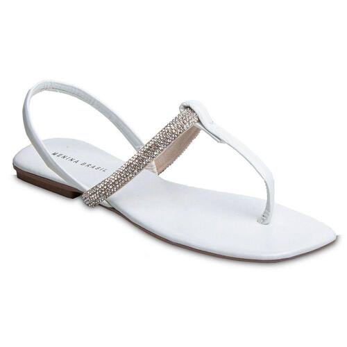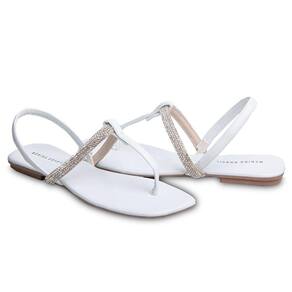 Sandália Rasteira Paula com Strass Branca 2591 - Branco - 36