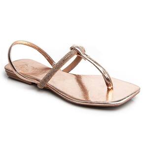 Sandália Rasteira Paula com Strass Bronze 2593 - 43 - Marrom