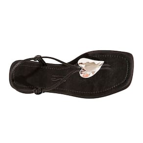Rasteira confeccionada em material napa soft. Possui a parte traseira à mostra, salto flat e bico quadrado. Traz tiras finas no cabedal que se conectam ao tornozelo e se destaca pelo detalhe em coração de metal. Essa combinação de elementos faz dessa rasteira uma escolha perfeita para quem busca um look casual, mas com um toque de estilo e elegância, ideal para o dia a dia ou para ocasiões mais descontraídas.