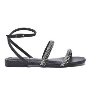 Além disso, tiras confortáveis e revestidas de Strass envolvem o peito do pé e os dedos, adicionando um toque de elegância ao calçado. Essa combinação de elementos oferece um visual único e sofisticado, tornando a sandália rasteira Via Marte uma escolha irresistível para quem busca conforto e estilo em cada passo.