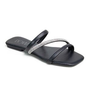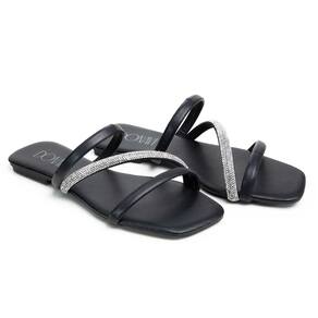 Sandália Rasteirinha Casual Feminino Tiras Brilho Moda Elegante Prática - 35 - Preto