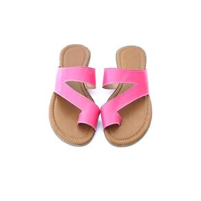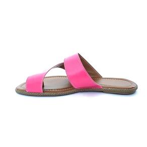 Sandália Rasteira Vazada em couro sintético, palmilha macia e solado em PVC.