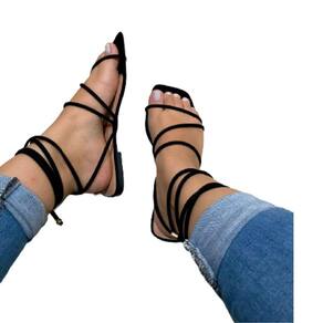 Com design moderno combinando tiras finas e sola flat antiderrapante, esta sandália proporciona conforto e segurança ao caminhar.
