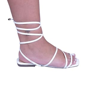 Sandália Rasteirinha de Tira e Amarração Feminina - 34 - Branco