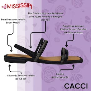 Deixe seu look ainda mais encantador com a rasteirinha brilho Mississipi! Conforto, estilo e brilho que se completam para você arrasar em cada passo.