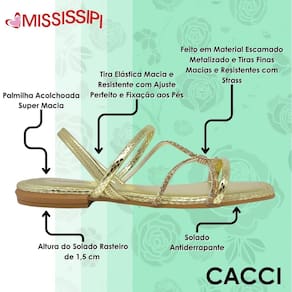 Garanta já a sua sandália rasteirinha metalizada escamada Mississipi e arrase com conforto, elegância e praticidade a cada passo.