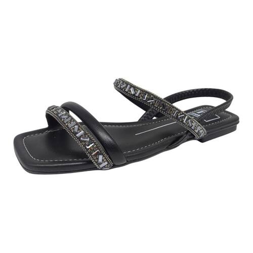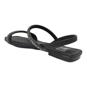 Sandália Rasteirinha Feminina Pedrarias Strass Estilo Moleca - 39 - Preto