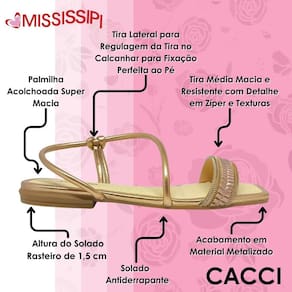 A nova Sandália Feminina Conforto Texturizada da Mississipi é a escolha certa para quem busca elegância com conforto o dia todo. Com um design sofisticado, ela traz detalhes em fechamento ecler e texturas que agregam estilo e modernidade ao visual, enquanto as opções de cores metalizadas e lisas garantem versatilidade para qualquer ocasião. A tira lateral com regulagem e a palmilha acolchoada proporcionam o ajuste perfeito para os seus pés.