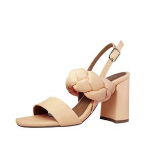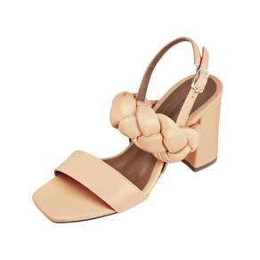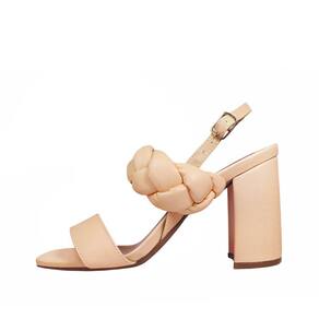 Linha de Sandália Salto Alto Grosso Luiza Sobreira, produzida em material sintético na cor Nude com tiras em trança, com palmilha e forro em P.U., solado em TR.