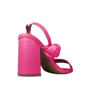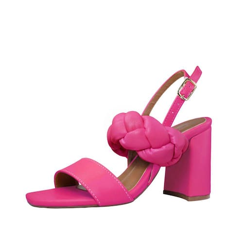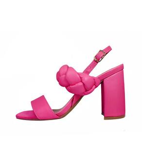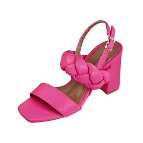 Linha de Sandália Salto Alto Grosso Luiza Sobreira, produzida em material sintético na cor Pink com tiras em trança, com palmilha e forro em P.U., solado em TR.