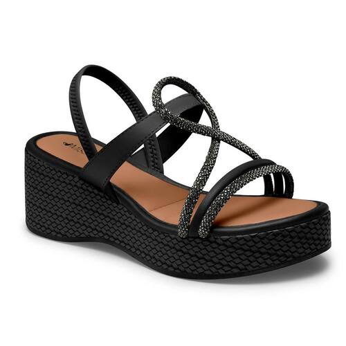 Sandália Feminina Mississipi Anabela Brilho Calce Fácil MF501