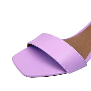 Linha de Sandália Salto Baixo Grosso Luiza Sobreira, produzida em material sintético na cor Lilás, com palmilha e forro em P.U., solado em TR.