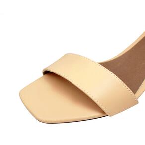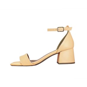 Linha de Sandália Salto Baixo Grosso Luiza Sobreira, produzida em material sintético na cor Pêssego, com palmilha e forro em P.U., solado em TR.