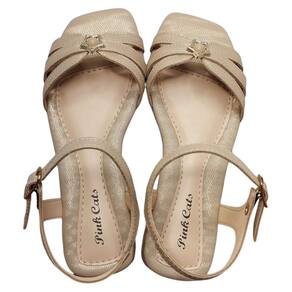 Sandalia Salto Baixo Meninas Pink Cats Brilho Estrela V5691 - 31 - Bege médio
