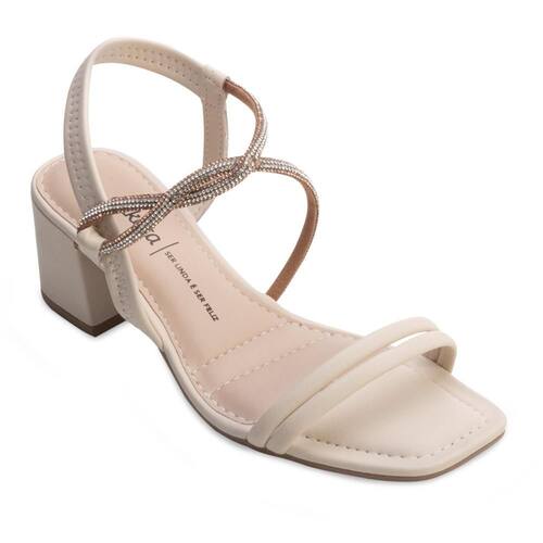Nome: Sandália Salto Bloco Dakota DT24-Y7502. Gênero: Feminino. Indicado Para: Moda-Dia a dia. Estilo da Peça: Casual. Ocasião: Dia a dia. Material Externo: Alternativo. Detalhes: Tira com strass na parte frontal. Ajuste: Tira elástica no calcanhar. Palmilha: Anatômica e macia. Solado: Borracha antiderrapante. Tipo de Salto: Bloco. Altura do Salto: Médio 5,5 cm. Peso do Produto: 718 g (o peso varia de acordo com a numeração). Garantia do Fabricante: Contra defeito de fabricação. Origem: Nacional. Código Produto: 02430537. Marca: Dakota.