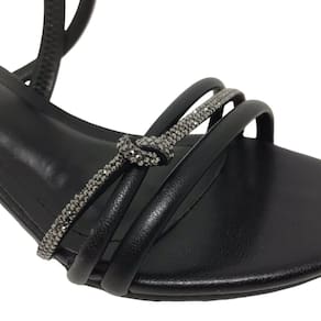 A sandália Via Marte apresenta um design elegante e contemporâneo, ideal para quem busca estilo e conforto. Seu salto médio bloco revestido e bico quadrado proporcionam estabilidade e uma estética moderna. O calcanhar é envolvido por uma tira em elástico, garantindo um ajuste seguro e confortável. Destaque para as duas tiras com detalhes em strass, que envolvem os dedos do pé, adicionando um toque de brilho e elegância ao calçado. Esta sandália é perfeita para complementar diversos looks, seja para ocasiões especiais ou para adicionar sofisticação ao dia a dia. Com a sandália Via Marte, você estará pronta para desfrutar de estilo e bem-estar em cada passo.