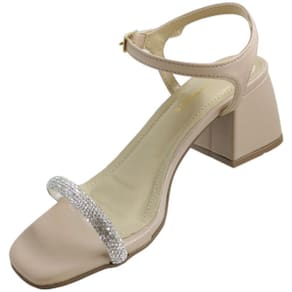 Sandália Salto Médio Bloco Bico Quadrado com Strass Via Marte 23-9707