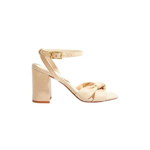 Sandália salto grosso com bico quadrado e fechamento em fivela. Seu design único, com tiras em nó, acrescenta um elemento de moda contemporânea, enquanto o salto grosso contribui para a praticidade e conforto no uso diário. Essa combinação de elementos faz desta sandália uma escolha versátil, perfeita para diversas ocasiões, onde o conforto se alia ao estilo sofisticado.