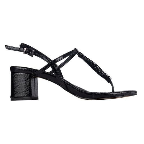 A sandália feminina confeccionada possui bico arredondado, salto bloco baixo e tira fina entre os dedos. É uma escolha versátil e estilosa para diversas ocasiões, seja para um evento formal ou para compor um look mais casual, ela combina conforto e elegância, garantindo um visual feminino e cheio de personalidade