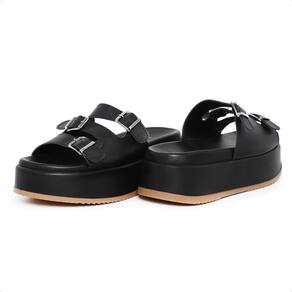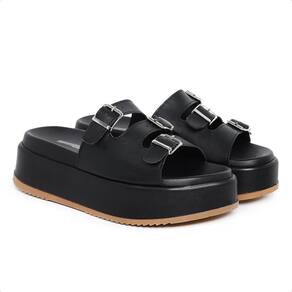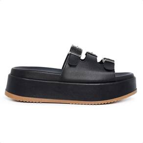 Sandália Tamanco Feminina Com Tiras Fivela Moderna - 39 - Preto