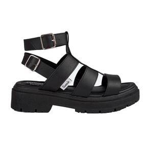 - Fechamento e ajuste em fivela com tira que prende no tornozelo.