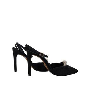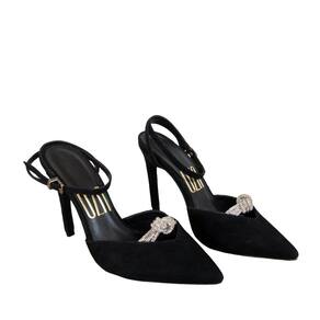 Sofisticação que nunca sai de moda. Essa sandália preta em camurça entrega elegância absoluta com seu design clássico e detalhes que fazem toda a diferença. O bico fino alonga a silhueta, enquanto o salto fino adiciona altura e elegância na medida certa. O detalhe do nó em strass no cabedal traz um toque de brilho discreto, porém extremamente sofisticado. A amarração delicada no tornozelo garante um ajuste perfeito e acrescenta ainda mais charme ao modelo.