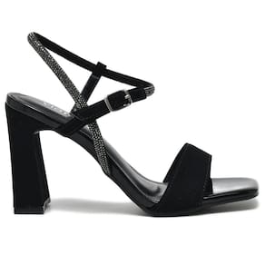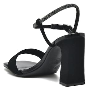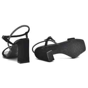 Sandália Via Marte Salto Bloco Tira Strass Bico Quadrado 23-18305 - 35 - Preto