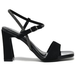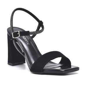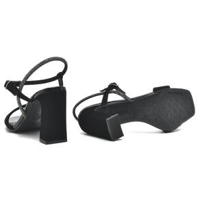 Sandália Via Marte Salto Bloco Tira Strass Bico Quadrado 23-18305 - 34 - Preto