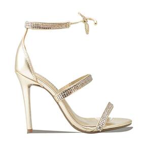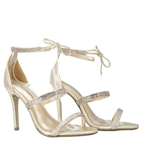 A Sandália Via Marte Salto Fino Alto Feminina Amarração Dourada possui fechamento por amarração, garantindo o ajuste ideal aos seus pés. O salto agulha somado com os strass aplicados nas tiras da sandália, garantem elegância e sofisticação.