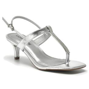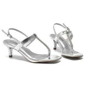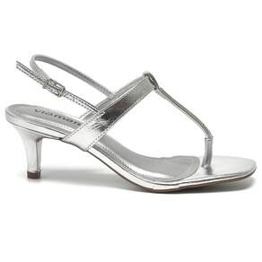 Sandália Via Marte Tira Fina De Dedo Com Strass Salto Médio Metalizado 203-002 - Prata - 35