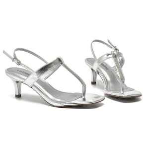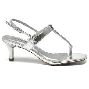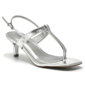 Sandália Via Marte Tira Fina De Dedo Com Strass Salto Médio Metalizado 203-002 - Prata - 36