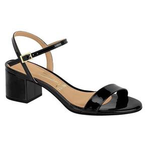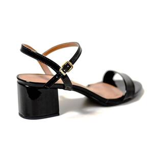 Sandália feminina confeccionada em material verniz, salto baixo grosso e fechamento por tira com fivela ajustável. Possui palmilha com alta absorção de impacto e umidade, solado flexível, emborrachado com frisos antiderrapante para garantir maior segurança e conforto ao caminhar.