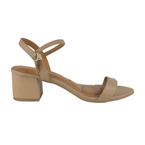 Sandália Vizzano Salto Bloco Médio Tira Fina - 39 - Bege | Dourado | Marrom