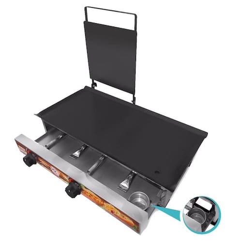 Conta com uma área útil de 57x27 cm e uma prensa de 24x24 cm permitindo alta produtividade de alimentos e deixá-los saborosos e crocantes. Além disso, esta chapa a gás retém calor por mais tempo, proporcionando economia e alcançando a temperatura necessária para o bom cozimento da carne.