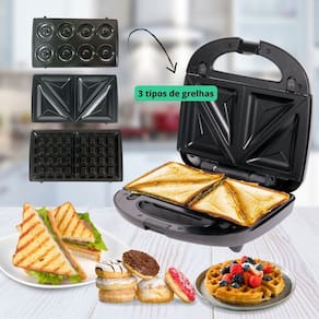 Funções: Placas intercambiáveis para Sanduíche, Donuts e WafflesQuantidade de Placas: 2 Placas de cada