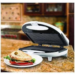 Sanduicheira antiaderente Brentwood TS 245, 750W, 110V, ideal para preparar 1 a 2 sanduíches. Possui aquecimento rápido e uniforme, placas antiaderentes e luzes indicadoras de energia e pré-aquecimento.Funciona como grill