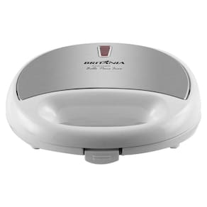 Sanduicheira Britânia Bello Pane Inox com 750W de potência, faz 2 sanduíches simultaneamente, possui placas antiaderentes que selam as bordas, base antiderrapante, trava de fechamento e porta-cordão.Funciona como grill