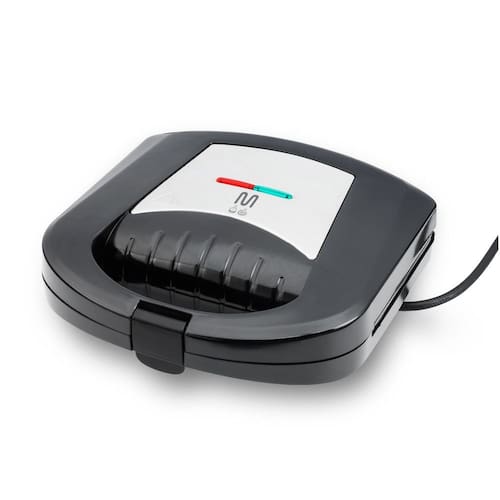 Sanduicheira com acabamento em inox, ideal para sanduíches, bifes, hambúrgueres, frangos, vegetais e panquecas. Possui chapas antiaderentes, alça fria e trava de fechamento.Funciona como grill