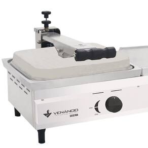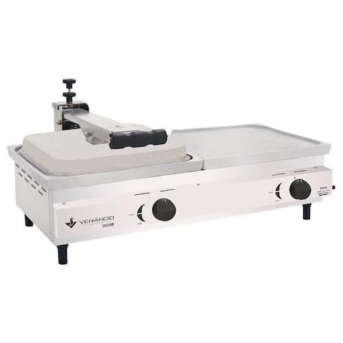 A Sanduicheira Conjugada a Gás Venâncio é fabricado em chapa de alumínio fundido, possuindo aquecimento na parte inferior realizado através de queimadores com sistema de gaveta. Possui corpo e painel em aço inoxidável 430, punho da prensa em material resistente ao calor e coletor de resíduos em aço inox 430.