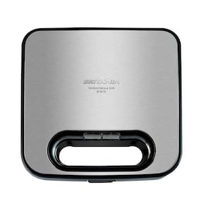 Sanduicheira e grill 2 em 1 Britânia BGR16 Redstone com 750W, placas com revestimento Redstone antiaderente, acabamento em aço inox, base antiderrapante, trava de fechamento e porta-fio.Funciona como grill
