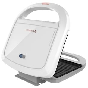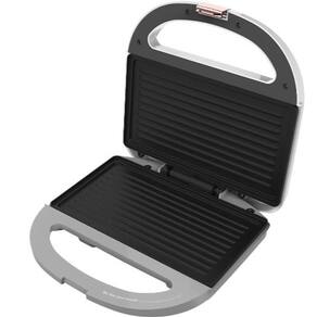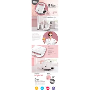 Sanduicheira elétrica Cadence com acabamento em rosé gold, capacidade para dois sanduíches, chapas antiaderentes, duplo aquecimento, alça isotérmica, porta fio, led luminoso, termostato, pés antiderrapantes e trava de segurança.Funciona como grill